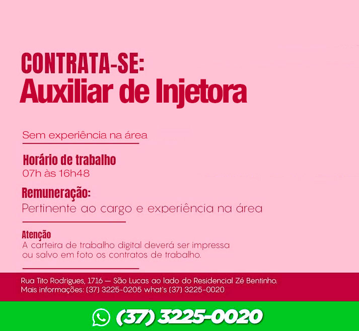Vaga para Auxiliar de Injetora em Nova Serrana – MG